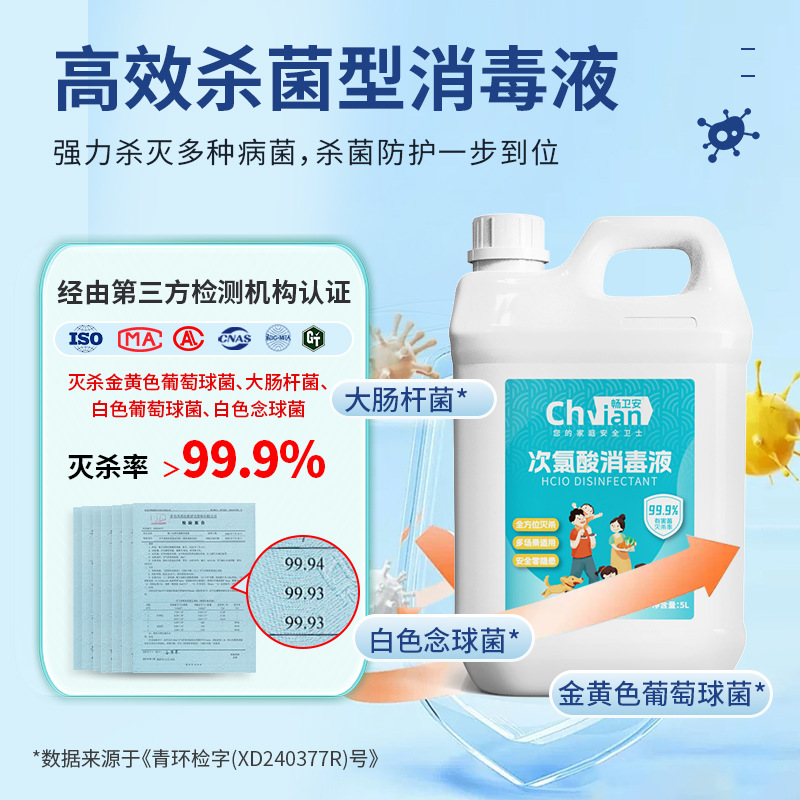 市面次氯酸产品鱼龙混杂,有的有效氯浓度不足,有的稳定性差,有的甚至添加了香精掩盖刺鼻味。作为源头厂家的拳头产品,畅卫安坚持用硬核品质说话: