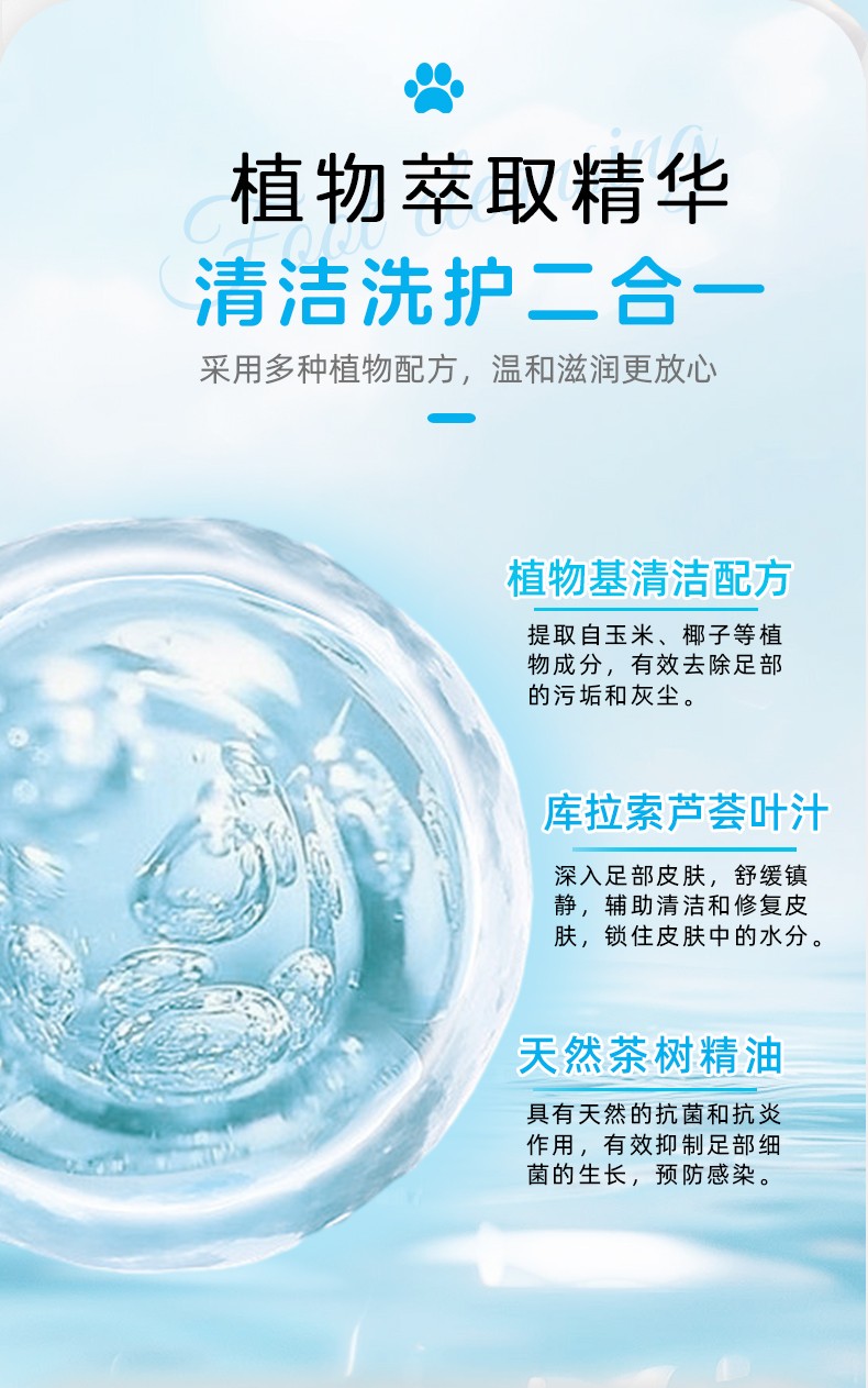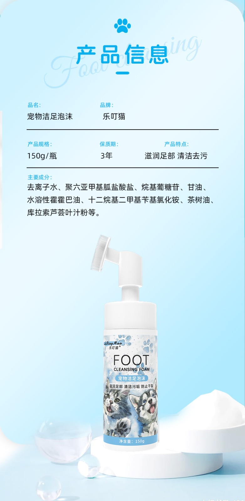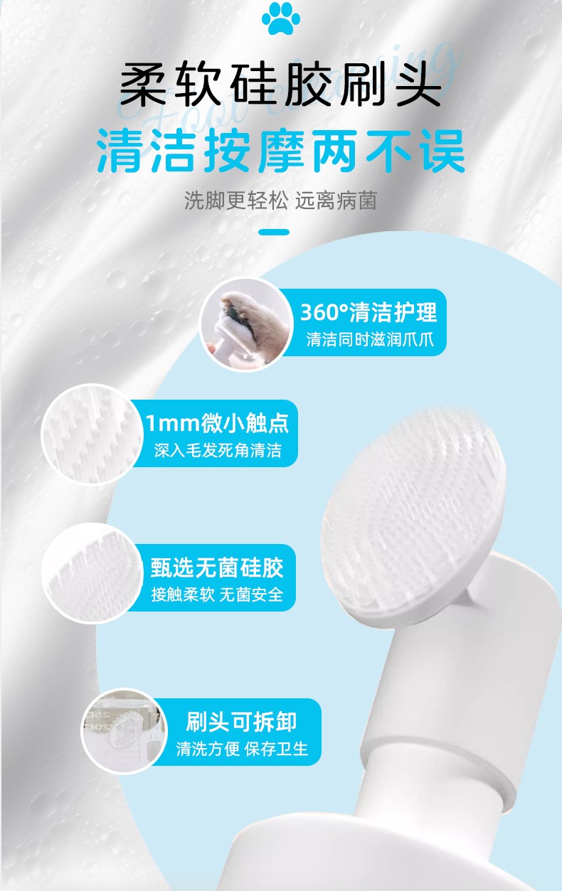 本品用于宠物足部日常的清洁和护理,具有滋润足部,防止足底干燥开裂,清除宠物外出带来的污垢和灰尘的作用。