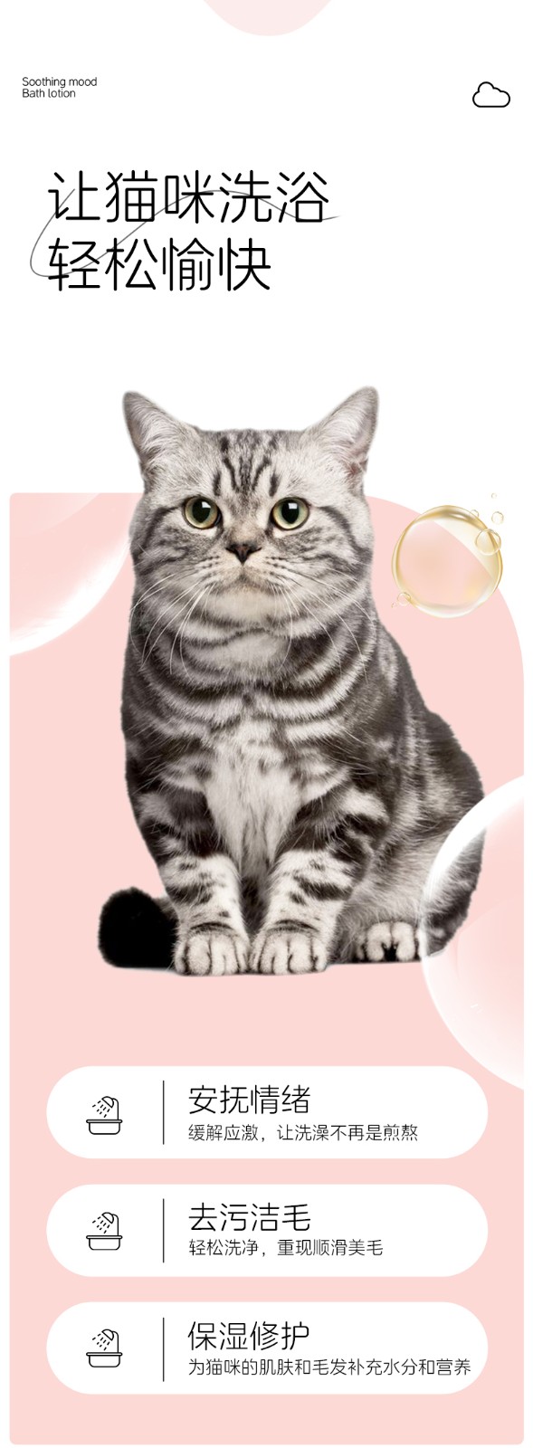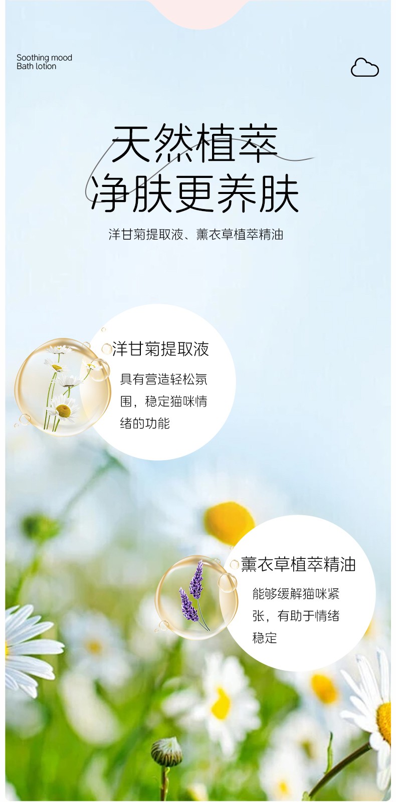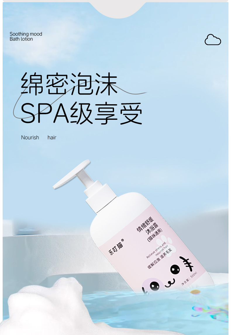乐叮猫猫咪情绪舒缓沐浴露 (500ml):天然洋甘菊薰衣草精粹,舒缓焦虑情绪 + 椰油甘油滋养,柔顺亮毛!APG植物无泪配方,洗澡安心更顺滑。