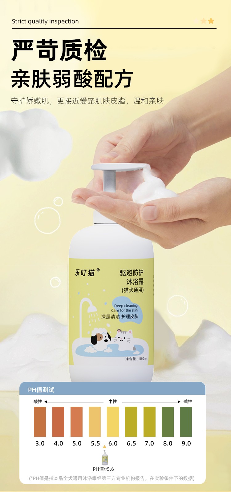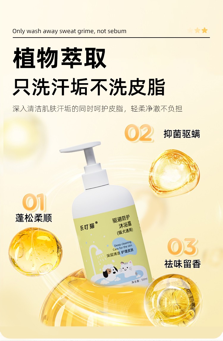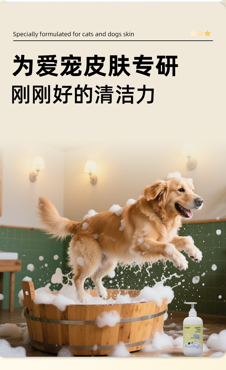 双效防护!氨基酸低敏舔舐无忧,微氧泡泡深层清洁,洗护驱虫一瓶搞定!