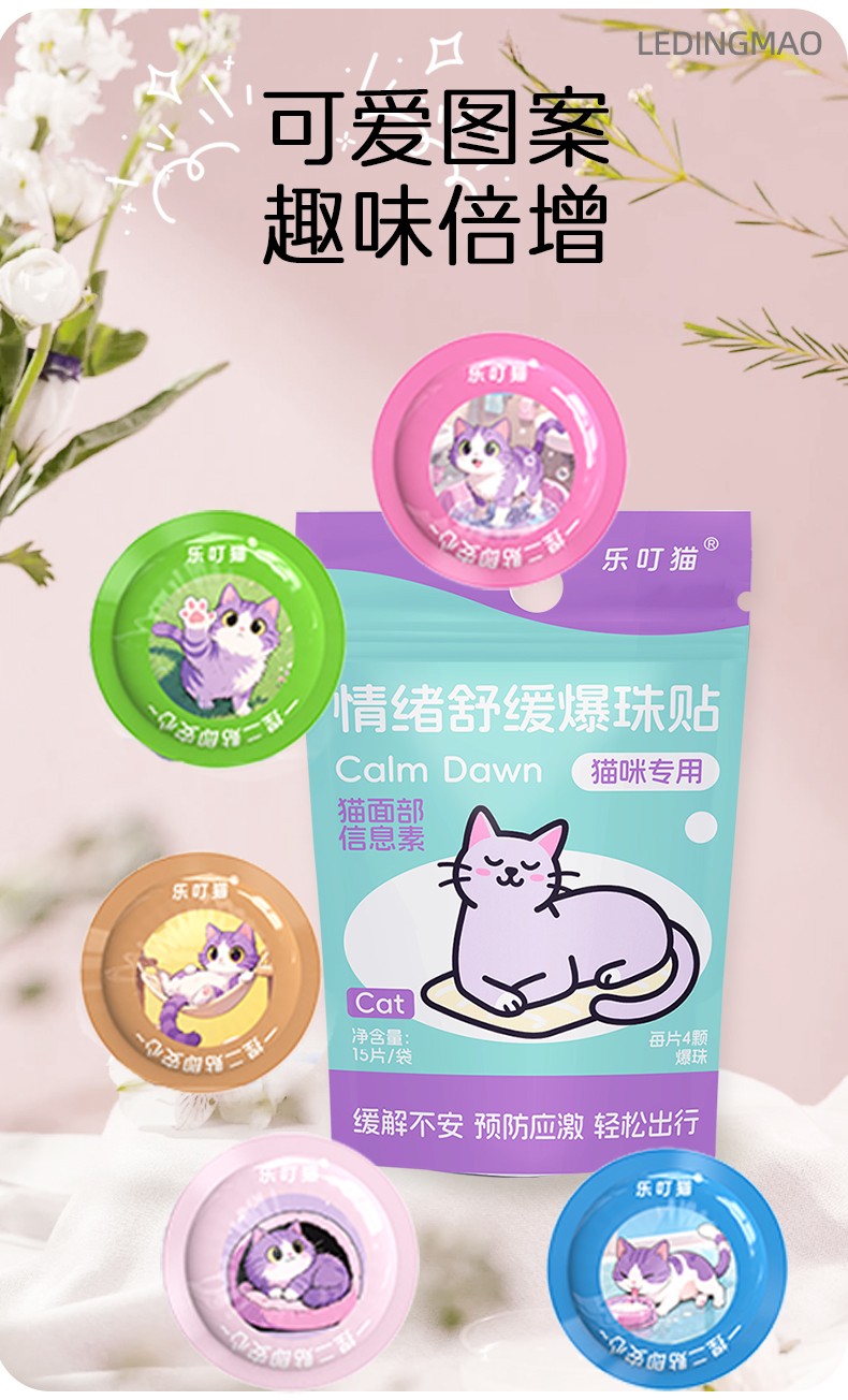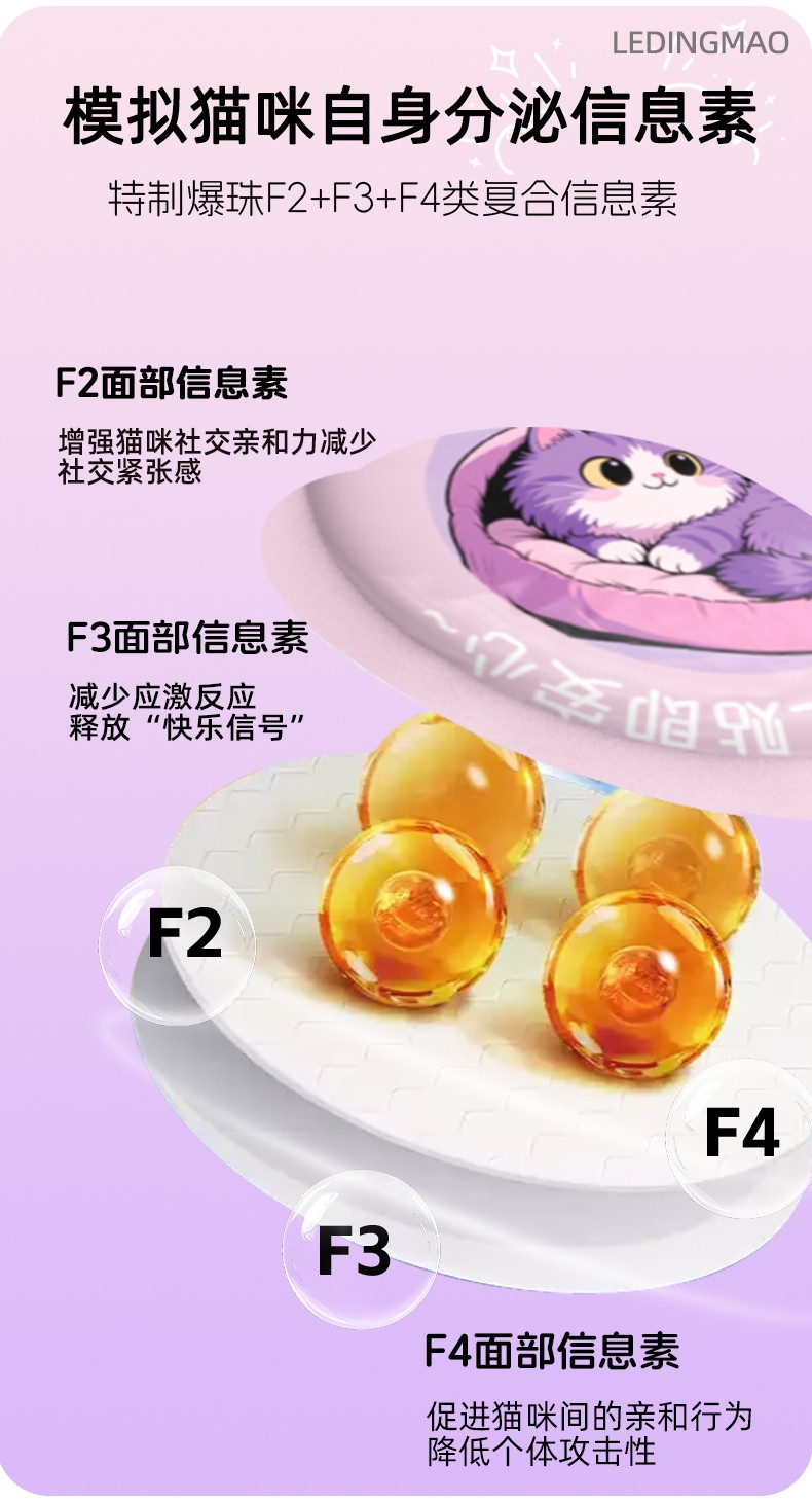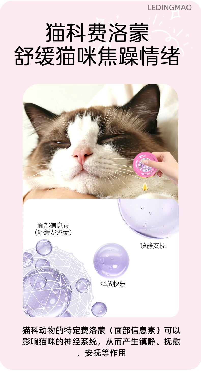 趣味爆珠设计,模拟猫咪自身分泌信息柔,通过影响猫咪神经系统,从而产生镇静、抚慰、安抚等作用。