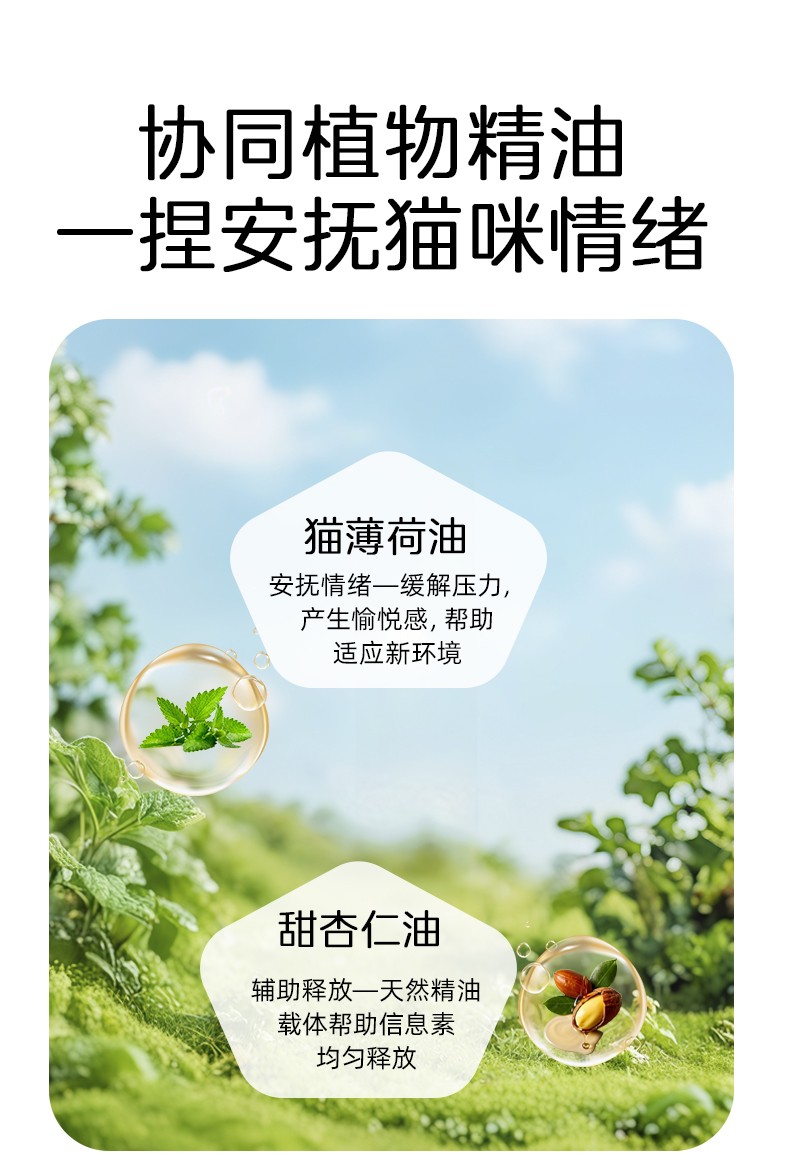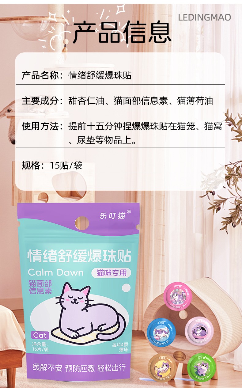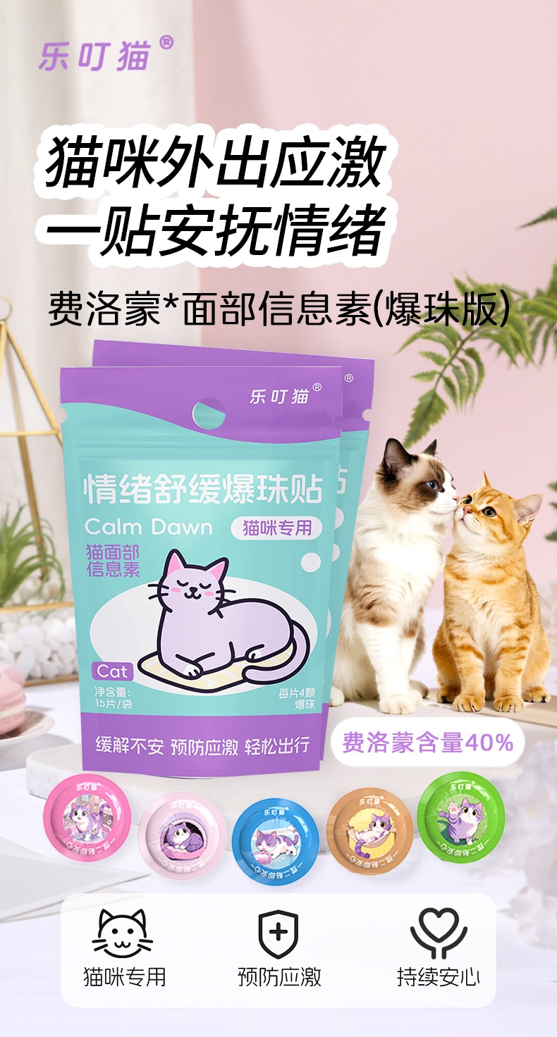 趣味爆珠设计,模拟猫咪自身分泌信息柔,通过影响猫咪神经系统,从而产生镇静、抚慰、安抚等作用。
