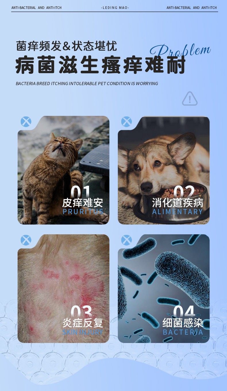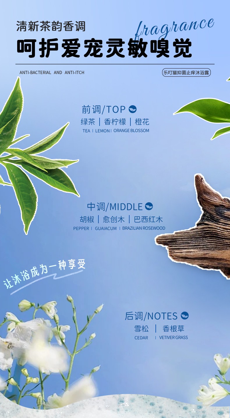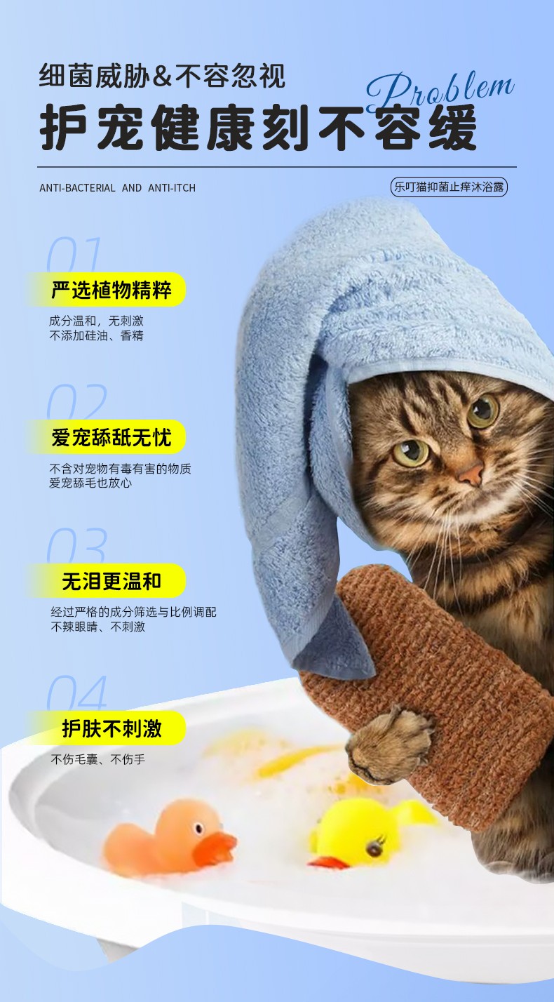 本品为猫犬通用型抑菌止痒沐浴液,对爱宠具有抑菌止痒、深层清洁、保湿修护、滋养美毛、护理皮肤等功效