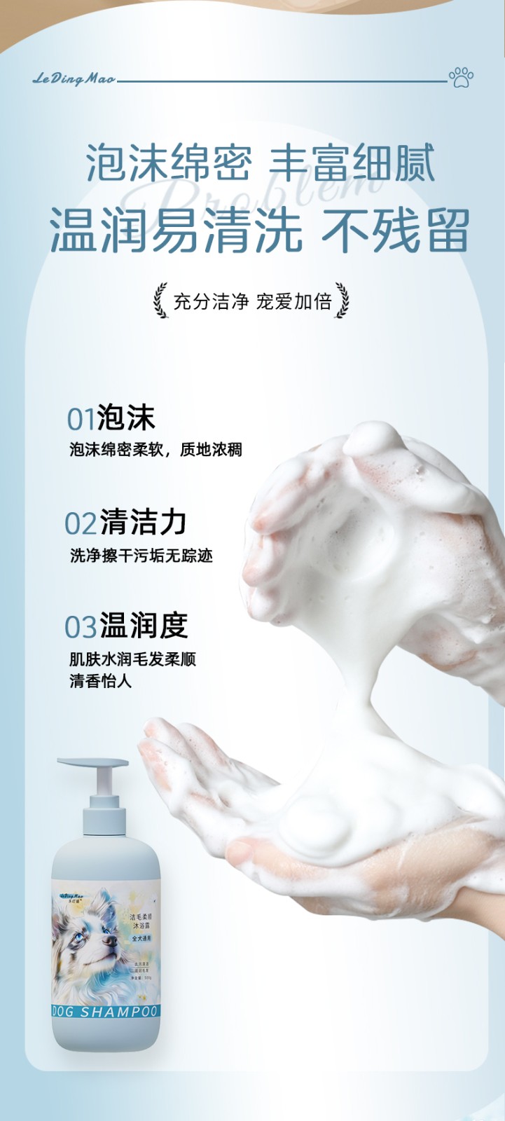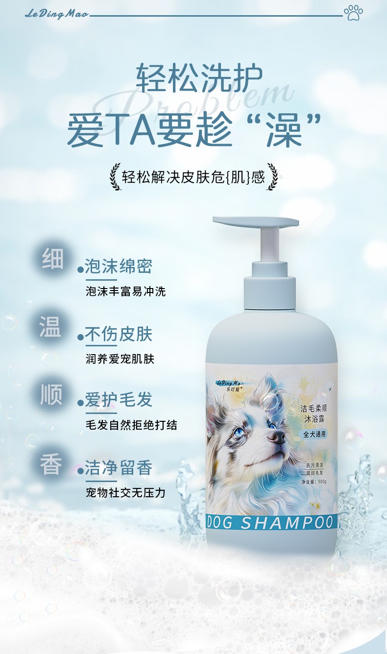 本品为全犬通用型沐浴液,对各类犬种具有去污洁毛、护肤柔顺、滋润皮毛、养护合一、靓丽毛发的作用。