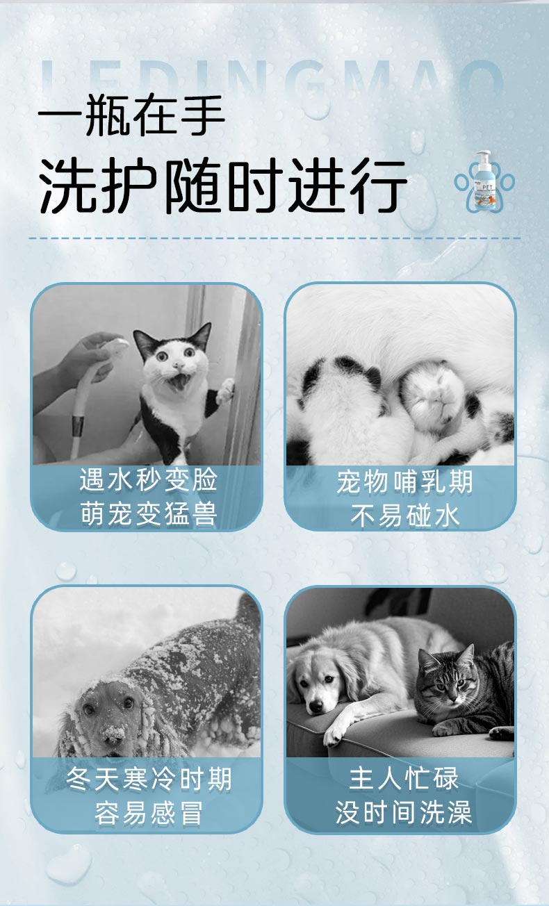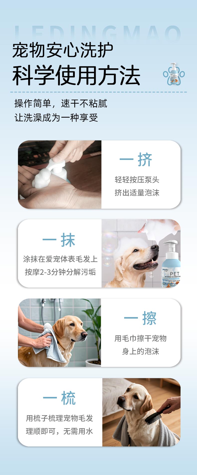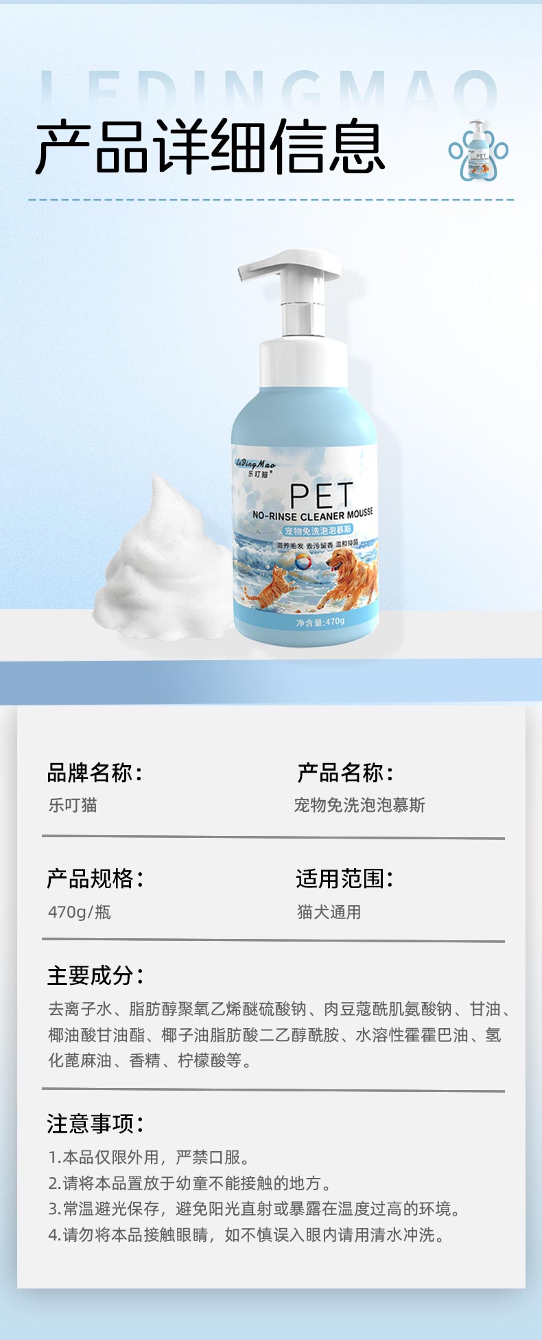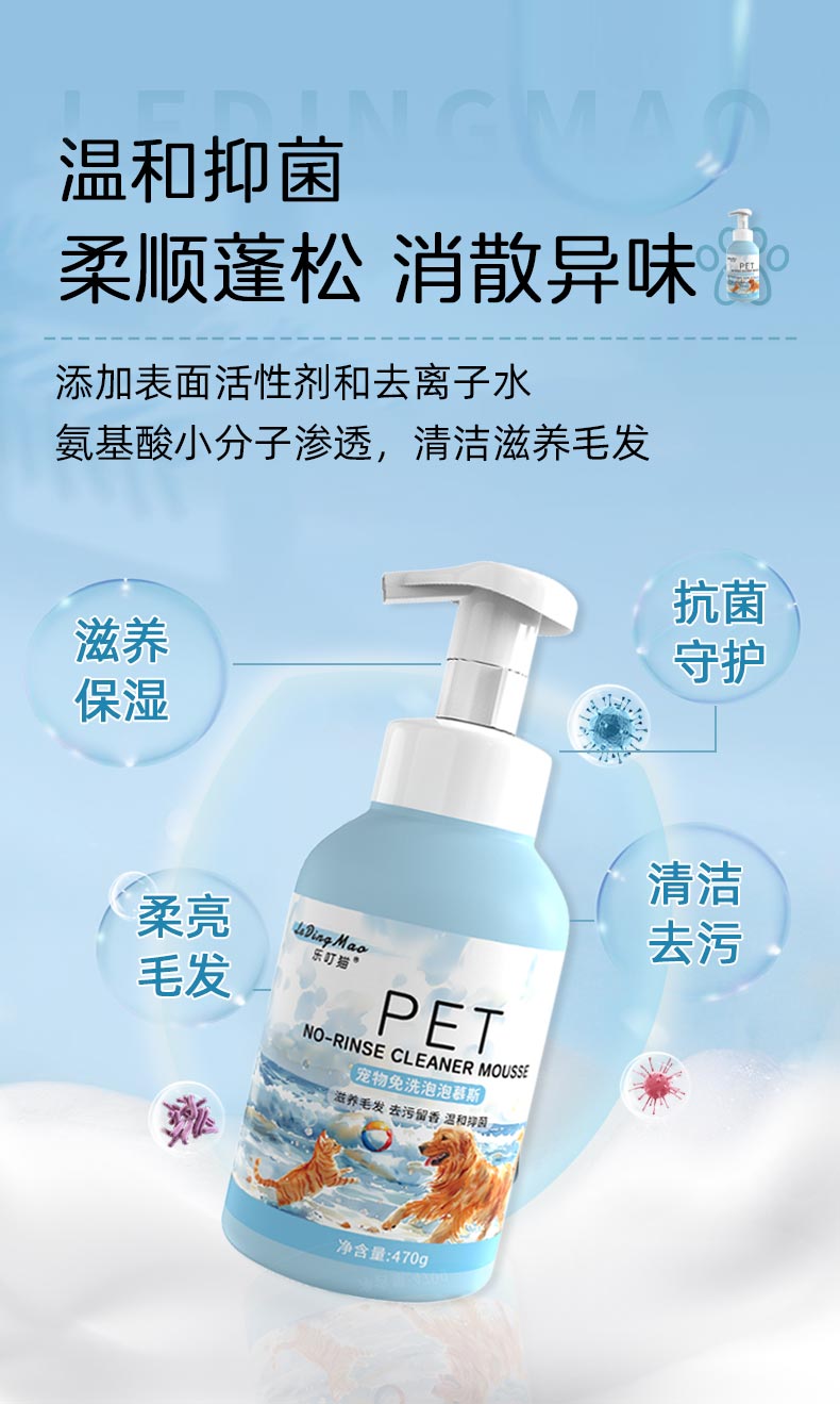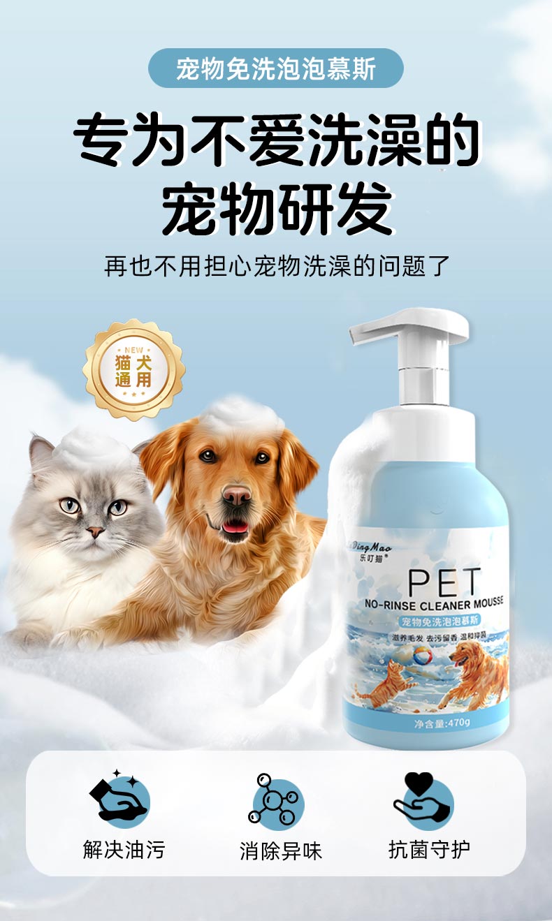 本品为猫犬通用免洗泡泡慕斯。具有去污留香、温和抑菌的作用。